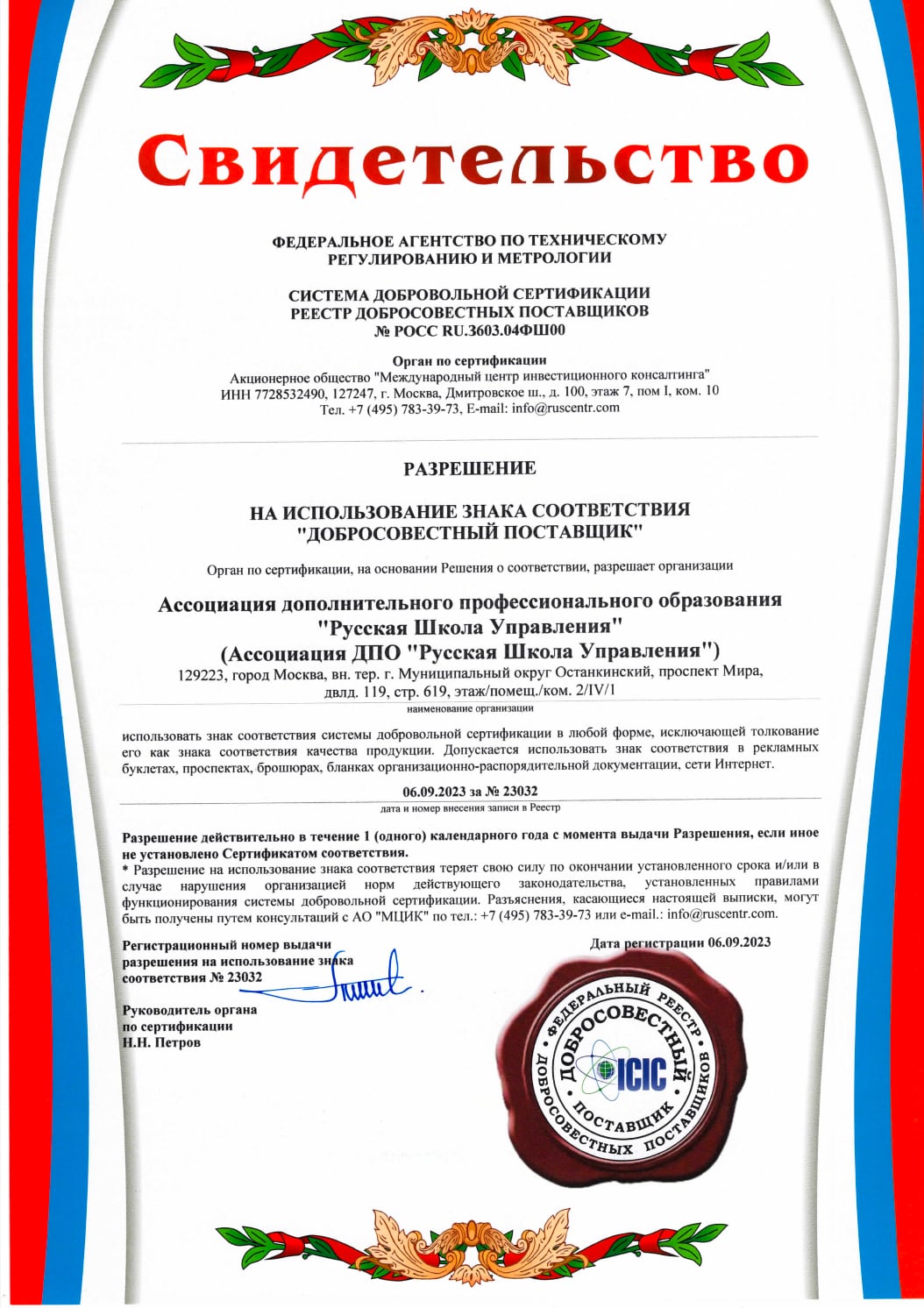Международный сертификат