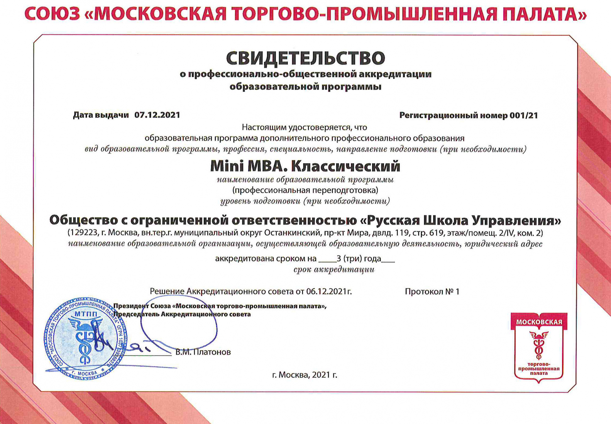 В 2025 году РШУ вошла в топ-3 «Первого рэнкинга программ Mini MBA», составленного порталом «МВА в Москве и России».