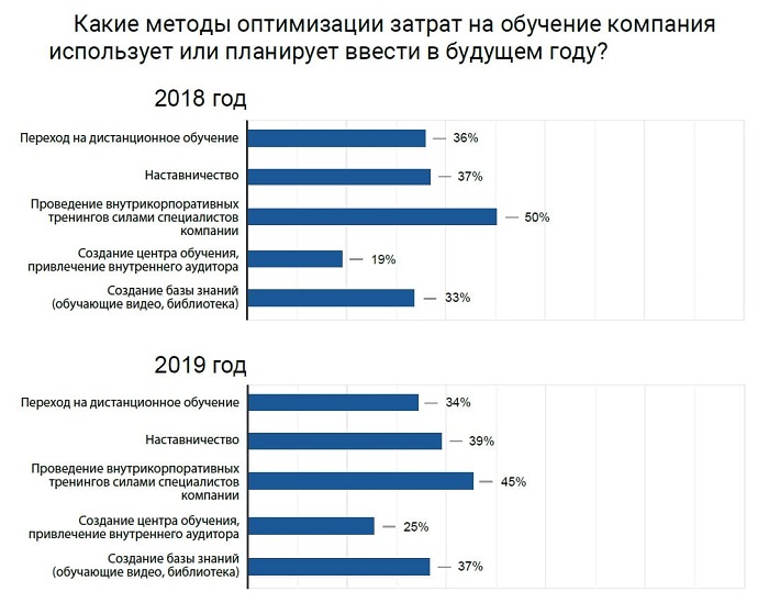 Для оптимизации затрат на обучение и профессиональное развитие персонала в 2020 году компании планируют: