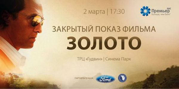 2 марта банк «БКС Премьер» при информационной поддержке Русской Школы Управления провел премьерный закрытый показ одного из самых ожидаемых фильмов 2017 года «Золото».